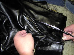 袖丈を2p詰める、ファスナー交換の為取り外します |