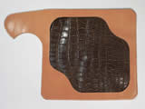 鱗のキメがそろい立体感がありツヤをおさえマット調に仕上げた上質のクロコダイル革です。 コーナー部分には、表情の違う鱗模様をアクセントで付けました。